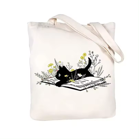 Tùy chỉnh dễ thương vui vẻ thẩm mỹ tái sử dụng mua sắm cửa hàng tạp hóa học tập với dây kéo cuốn sách Mèo Hoa không có túi vải